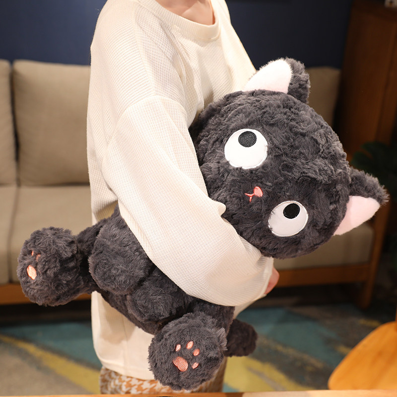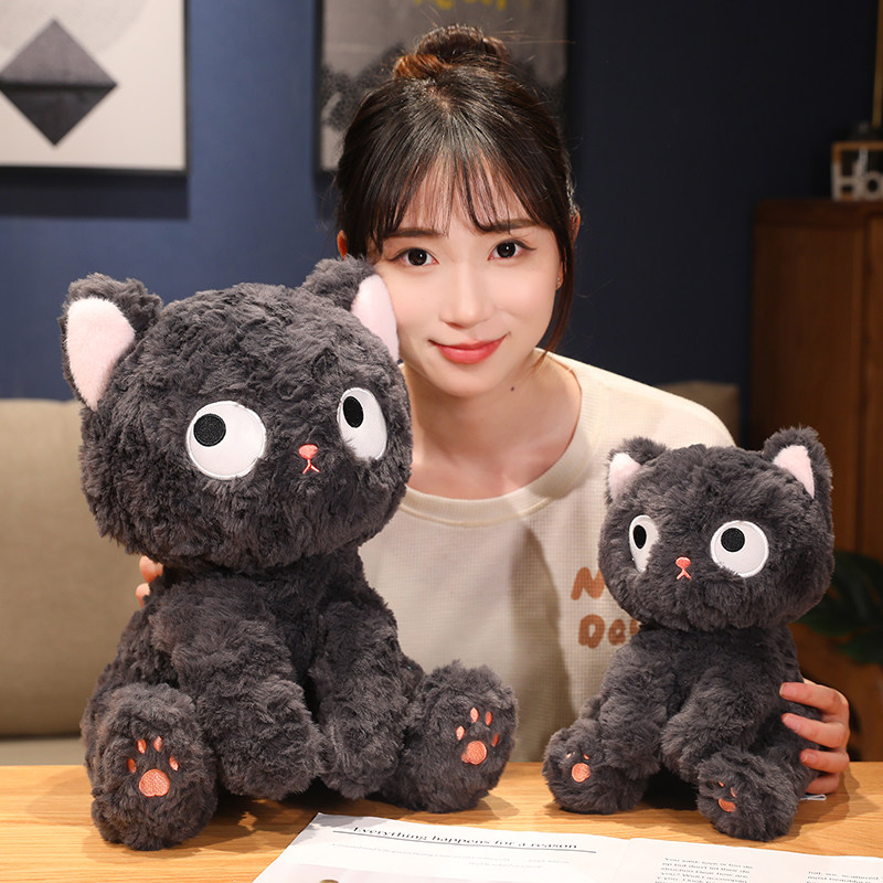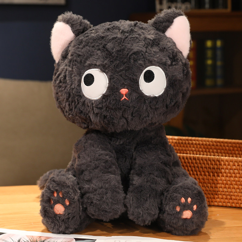 大きなまんまるお目々と小さな三角鼻が特徴的な猫ぬいぐるみです。