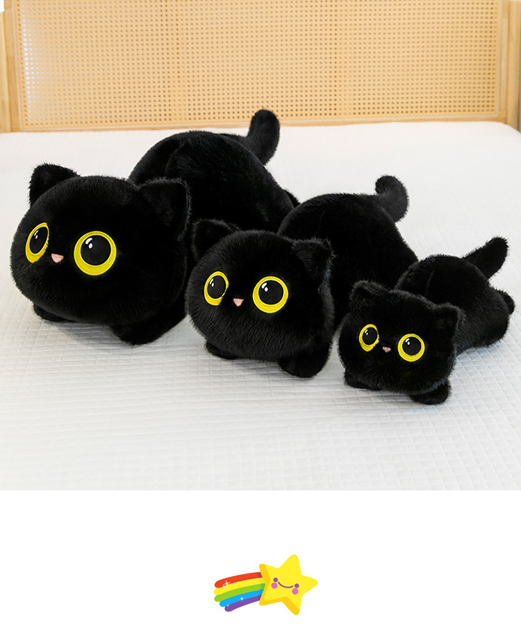 大きな黄色い瞳が印象的な猫ぬいぐるみです。