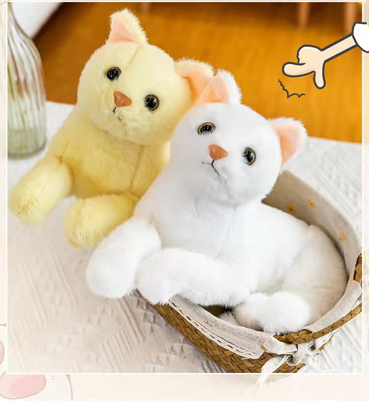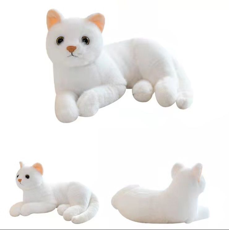 柔らかな素材で作られた白猫ぬいぐるみは、伏せをしたようなリラックスポーズが特徴的で、お部屋のインテリアとしても最適です。