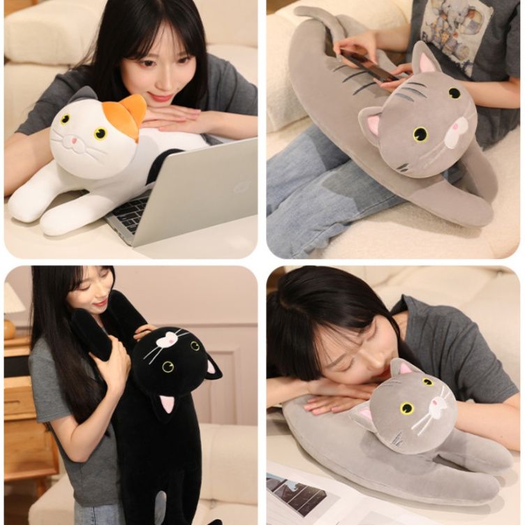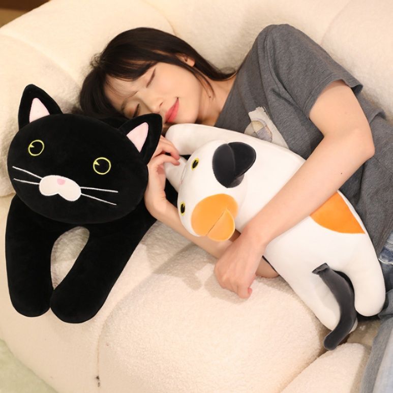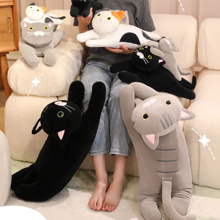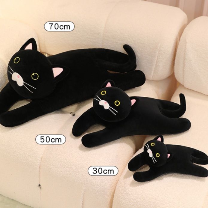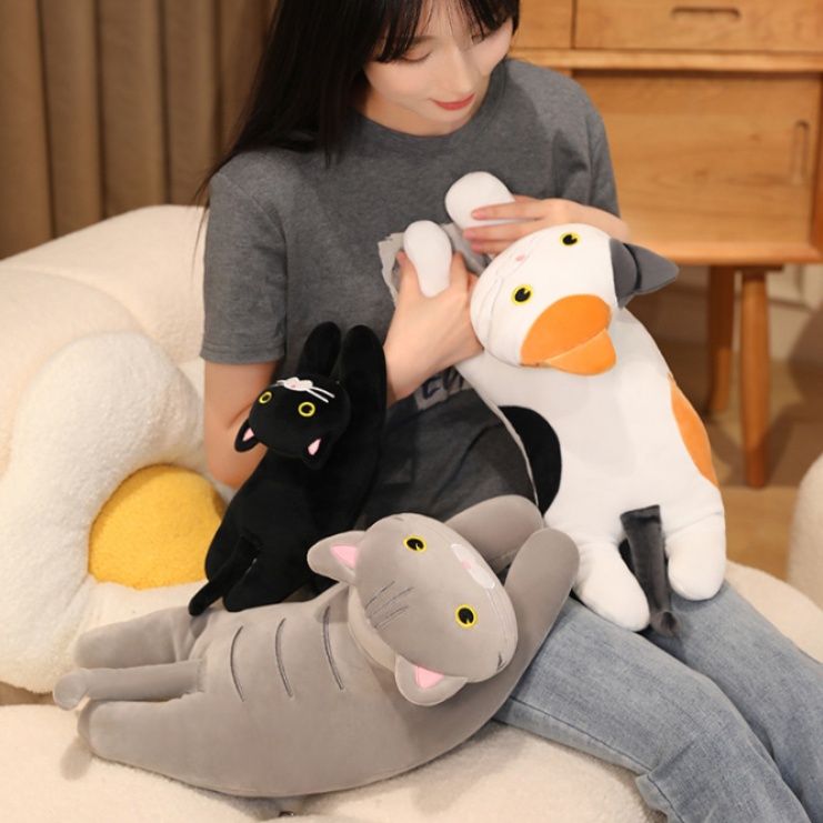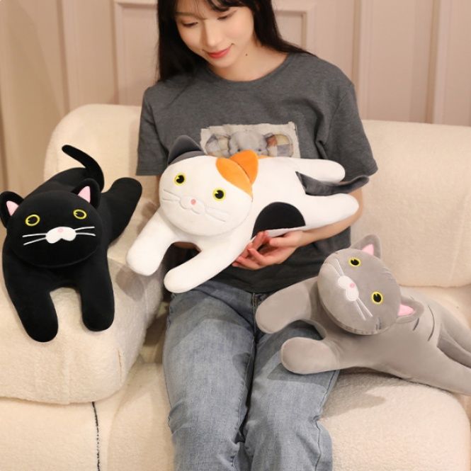 リラックスしたごろ寝姿勢が魅力的な猫ぬいぐるみです。