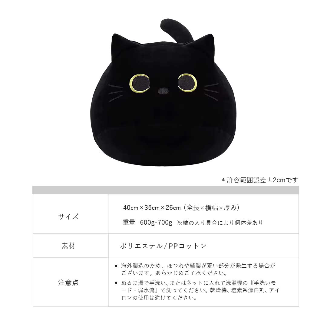 サイズ 全長約40cm(尻尾含む)×横幅約35cm×高さ約26cm *許容範囲誤差±3cm 重量 約600~700g ※綿の入り具合により個体差あり 素材 ポリエステル、PPコットン