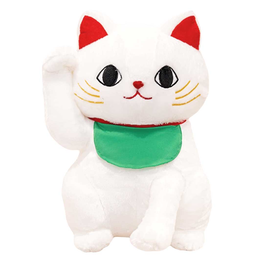 幸運を招く愛らしい存在感!ふわふわ手触りの白猫招き猫ぬいぐるみは、開運にも癒しにもぴったりな縁起物です。