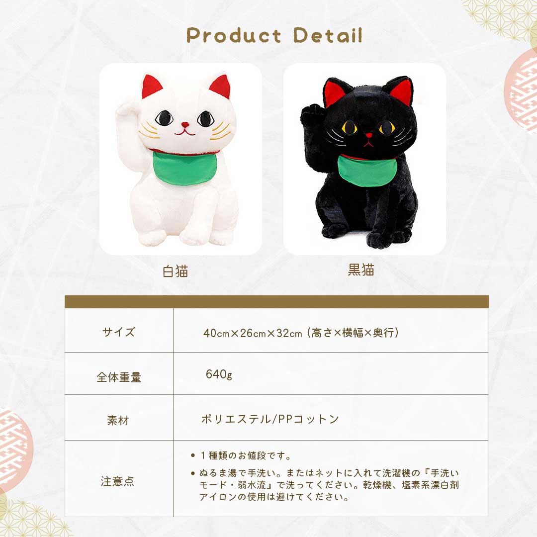 金運や幸福を招くと言われる白の招き猫を、やさしい表情と柔らかな生地で再現。玄関やリビング、デスク周りに置くだけで空間が明るく和やかに。