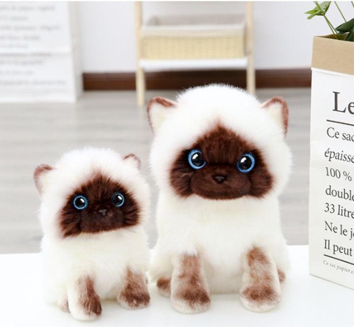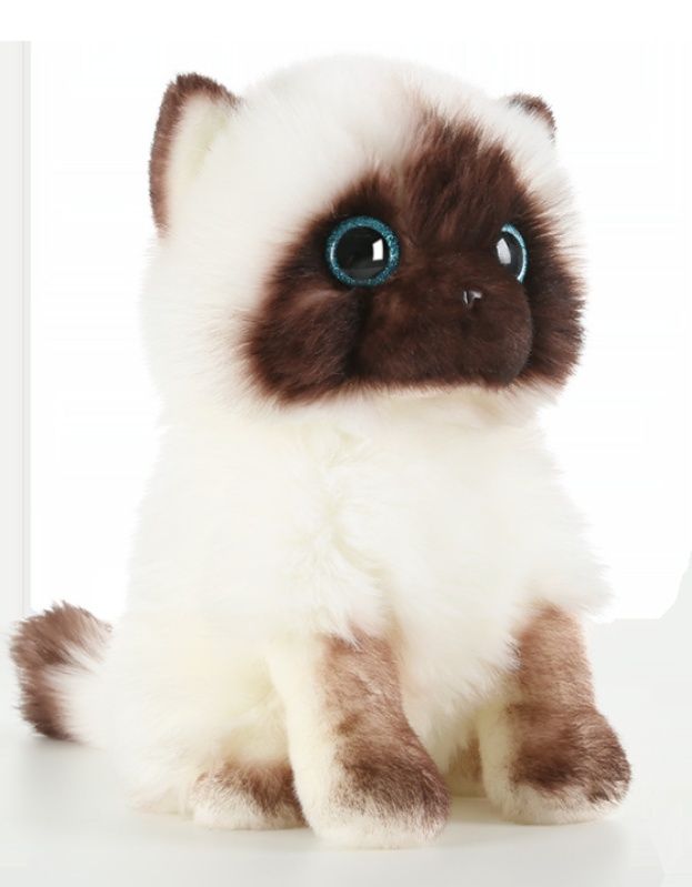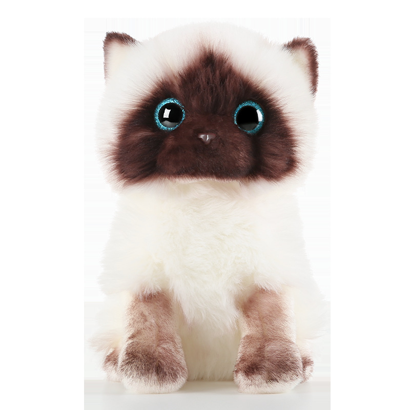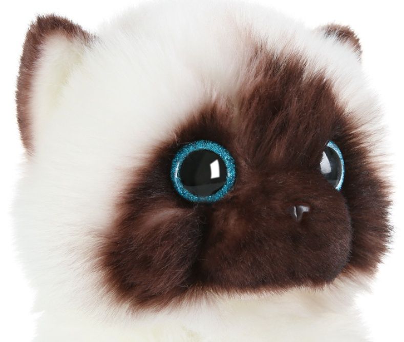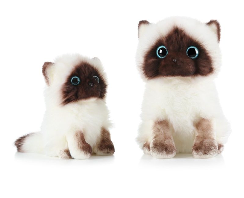 白をベースにしたふわふわの毛並みと、顔まわりや手足の優しい配色が特徴で、まるで本物の子猫のような愛らしさがあります。