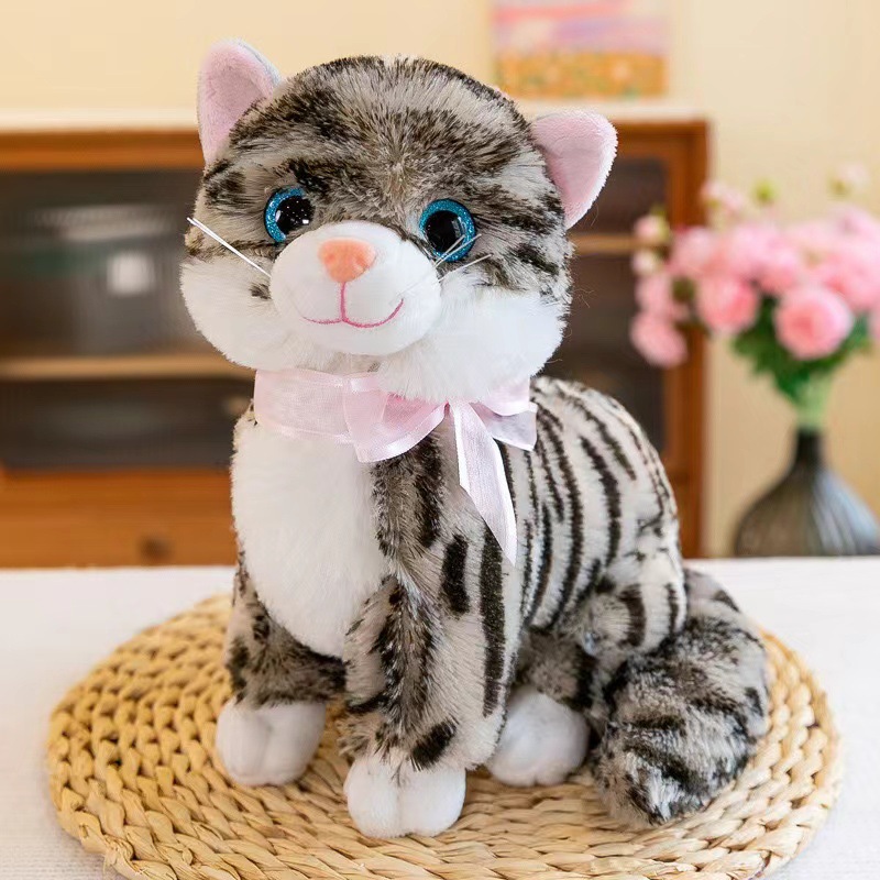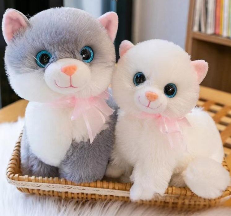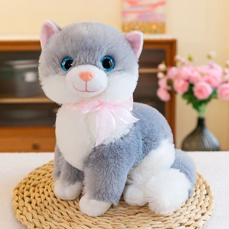 透き通るような青い瞳が愛らしい猫ぬいぐるみです。