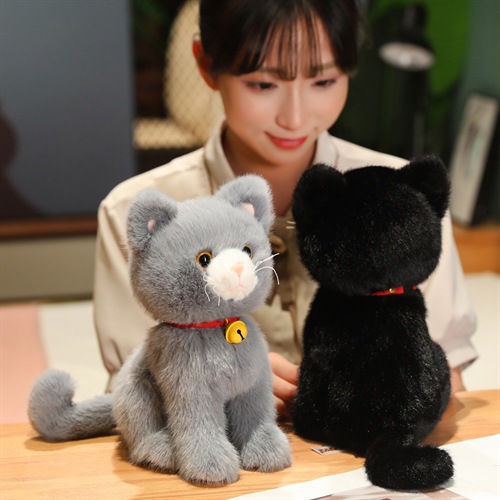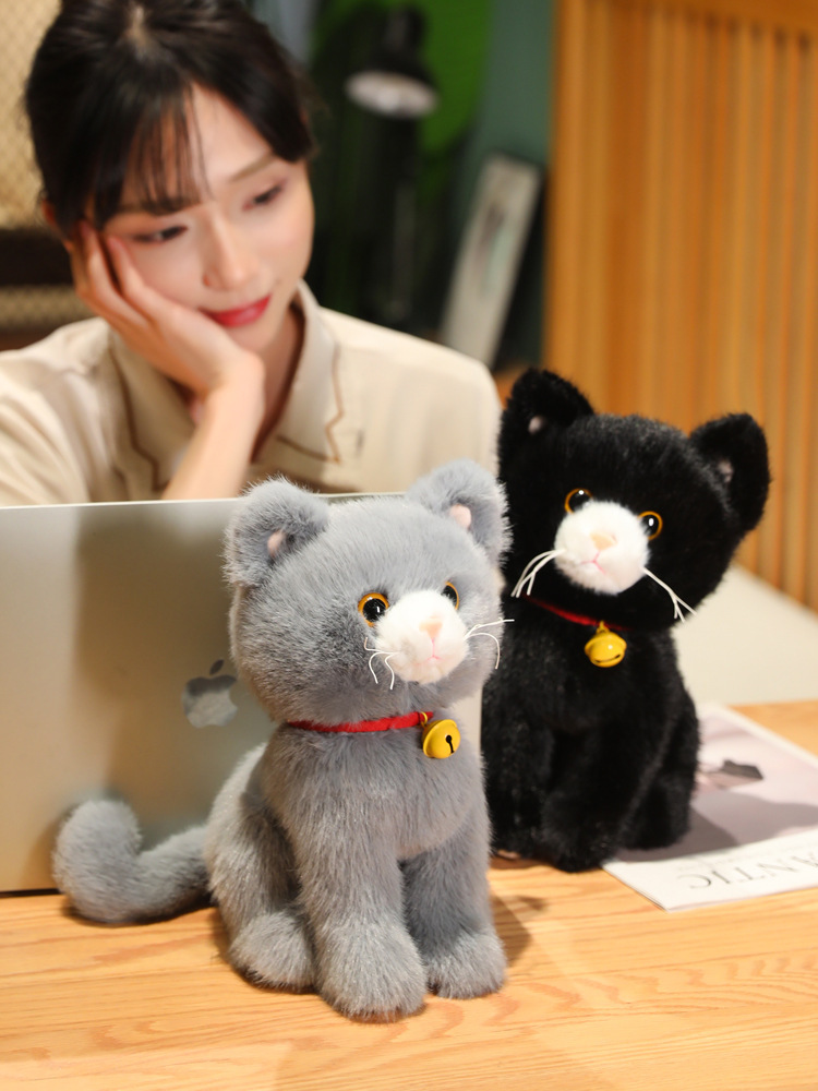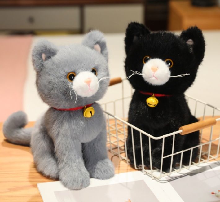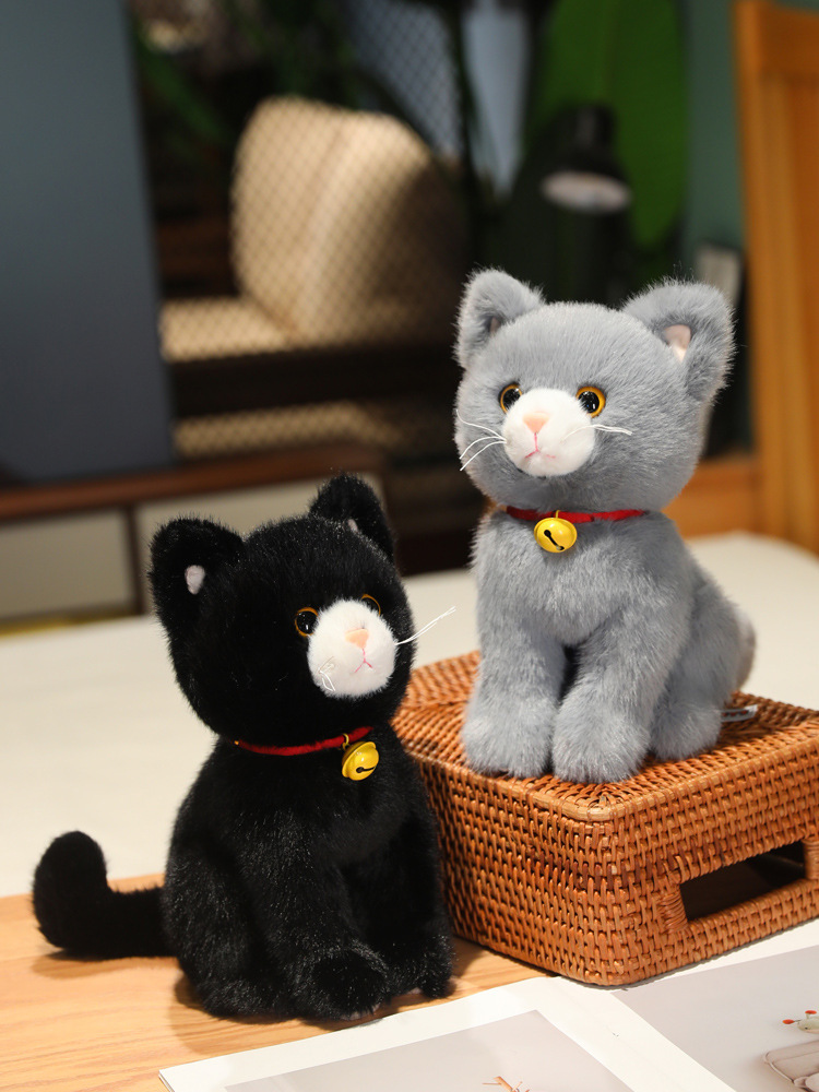 愛らしい表情と金色の鈴が魅力的な猫ぬいぐるみです。